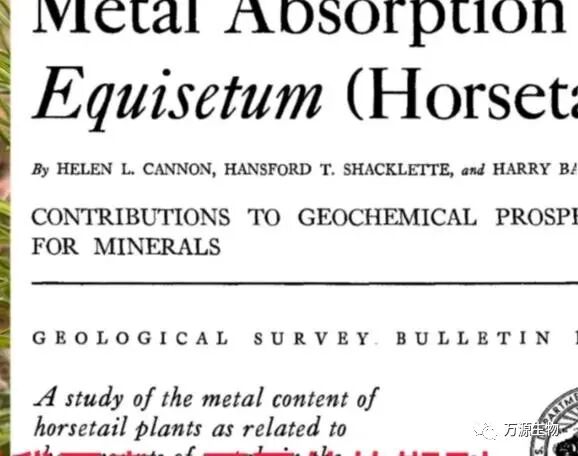 1968年美国地质勘探局对问荆草是否吸附金元素进行了研究,他们采集了矿化区和非矿化区的样品,结果发现问荆草下面的土壤净含量只有0.2PM,同普通土壤金元素含量没有差别,结论也是问荆不能吸附金元素。