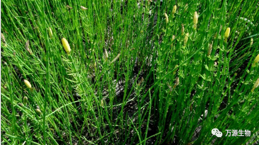 问荆草一种极具辨识的杂草,只因它和其他常见的植物有着很大的区别,植物只有茎干却没有叶子,问荆草的根茎也不像其他植物是绿色的,反而是黑棕色,并且它只有细长的像树枝一样的茎,像竹子一样还有分节,把它拔断以后,会有很茂盛的汁液流出来,青翠欲滴的青绿色。